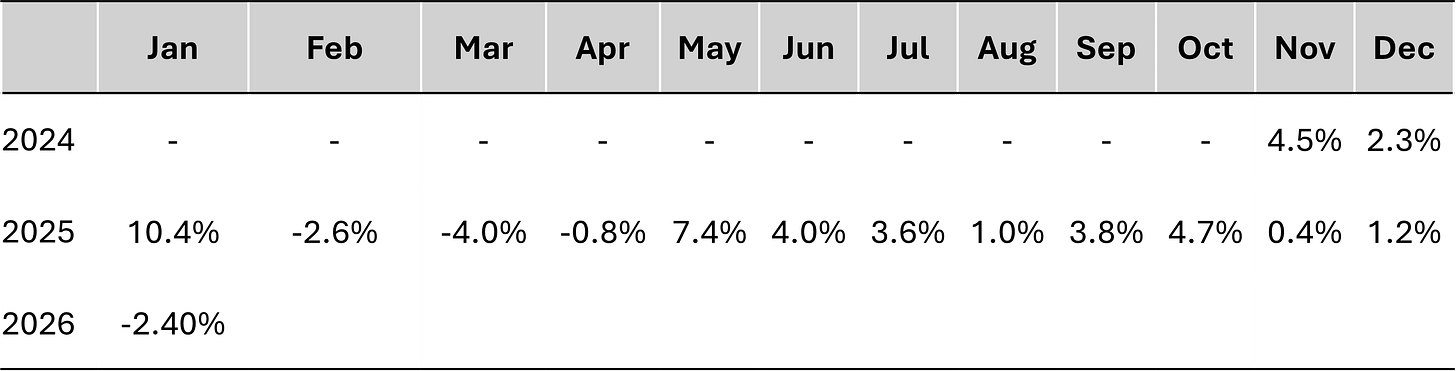 Inflation and macro: progress, but sticky pockets. The key macro release in January was the December CPI print. Headline CPI rose 0.3% m/m and 2.7% y/y, while core inflation was 2.6% y/y. This was slightly cooler than expected and supportive of the “disinflation continues” narrative. Markets reacted as expected: Treasury yields dipped after the release and equity futures steadied, reinforcing the view that the Fed could regain “breathing room” if the trend persists.